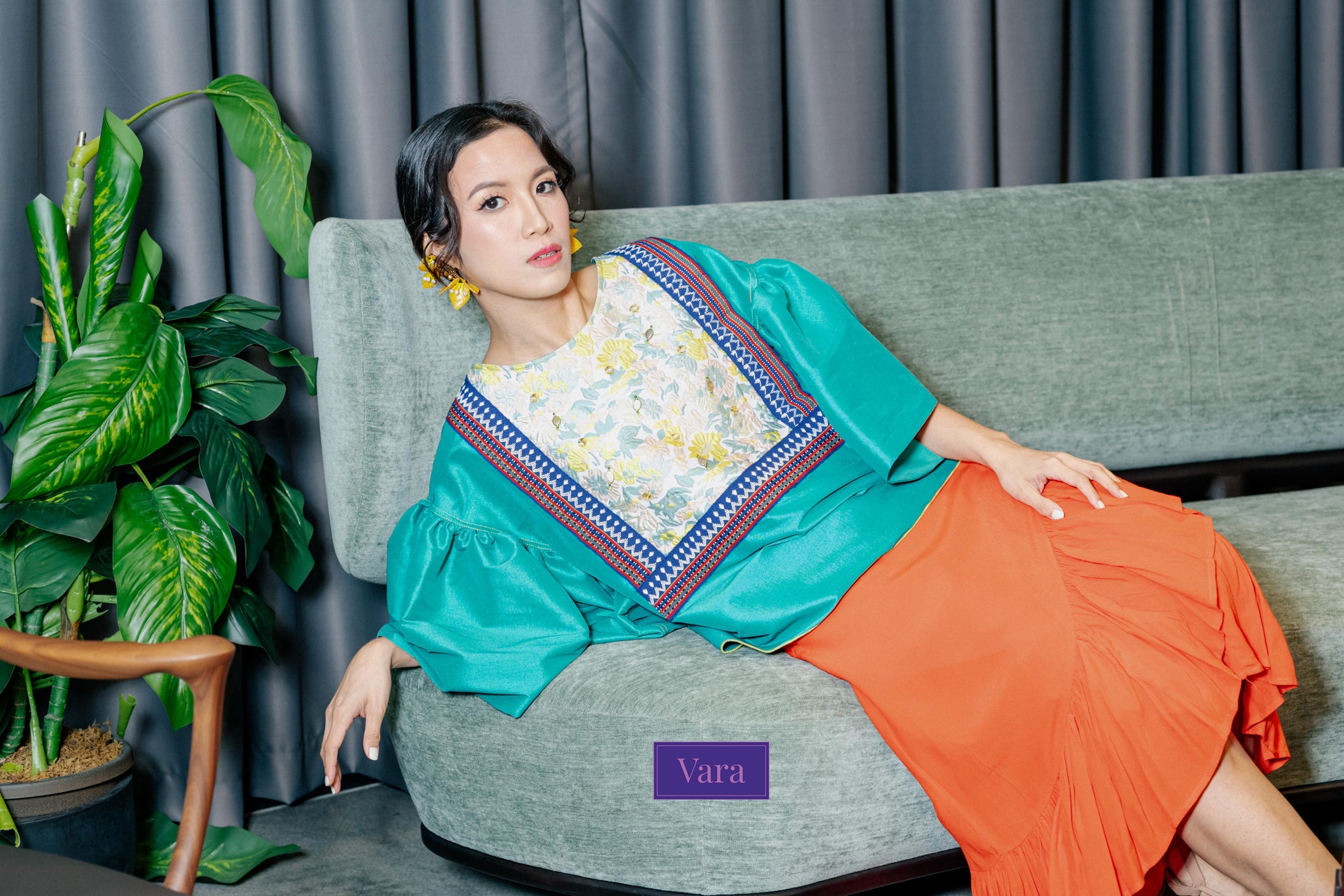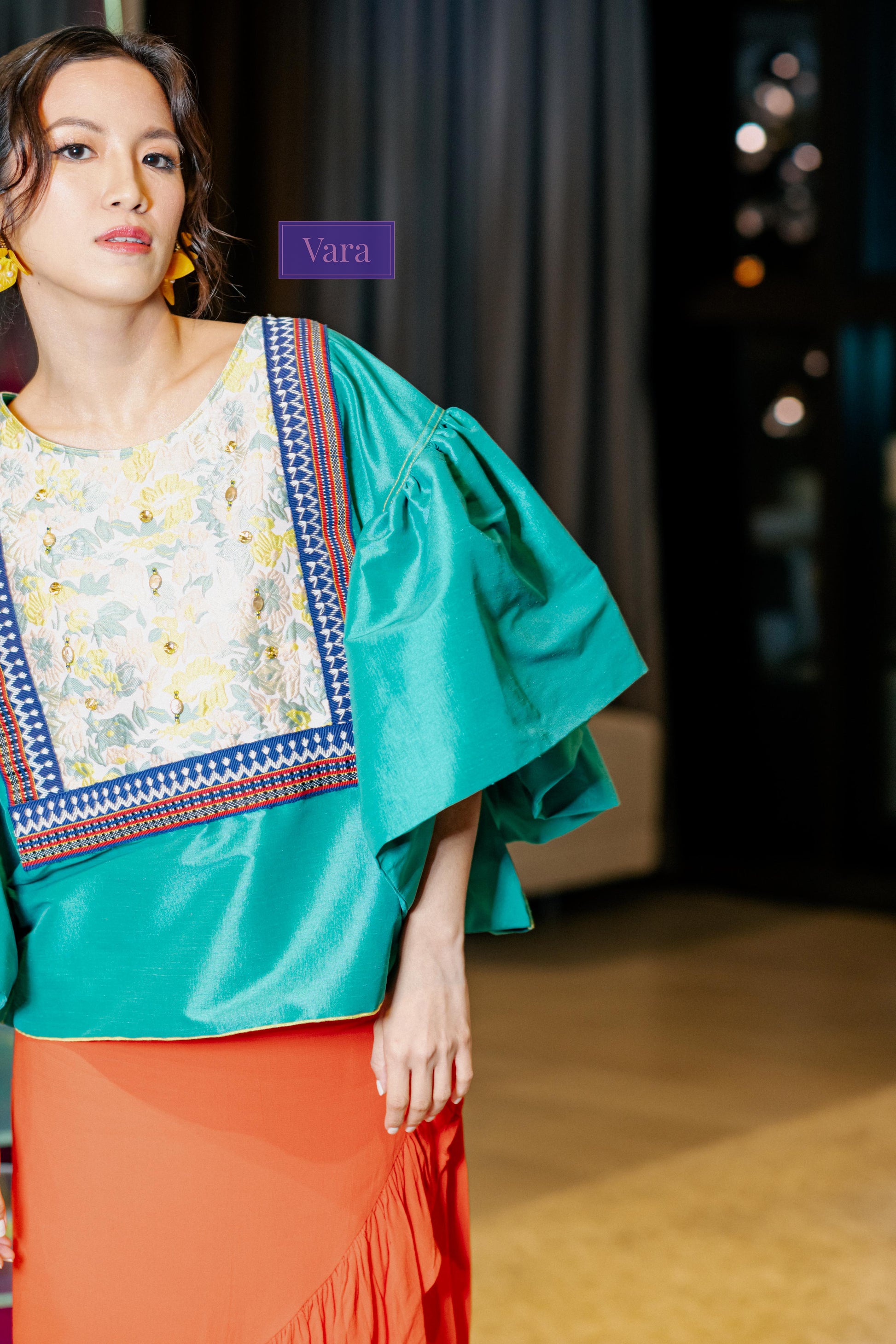Featuring a handwoven and hand embroidered ribbon detail sourced from The Cordillera region of The Philippines.